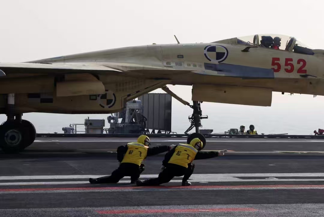 2023年4月,歼15随同海军山东舰航母编队通过台湾海峡。期间,突然遭遇外机抵近侦察,4架歼15挂弹起飞执行任务。