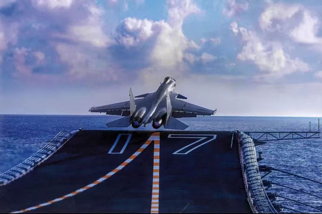 海风呼啸,战机轰鸣。歼15“飞鲨”,带着亿万人的期待,首次在辽宁舰上成功着舰并顺利完成舰上滑跃起飞。这一天标志着中国战斗机实现了从陆地向海洋的跨越。